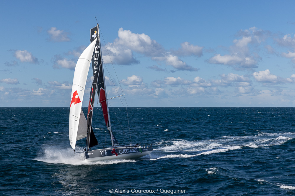 « Corentin, que nous avons découvert l’an dernier sur la Transat en double Concarneau Saint-Barthélemy qu’il a courue et terminée 2e avec Tanguy, à bord du Figaro Queguiner-Innoveo, nous a fait part à l’automne dernier de sa volonté de faire la Route du Rhum et d’aller chercher la victoire. Nous sommes très attachés à l’humain. Nous le connaissions et il avait un projet sportif gagnant et un nouveau bateau en construction. Tous les voyants étaient au vert et il a réussi à nous embarquer à ses côtés ».
